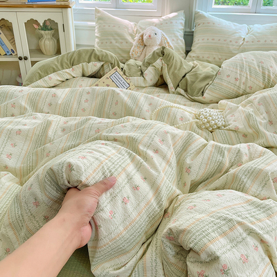 【拍4件套仅69.9元!A类母婴级双层纱四件套,透气亲肤,适合学生和家庭使用。被套+单双人+床笠,4件套超值组合,舒适睡眠新体验!】